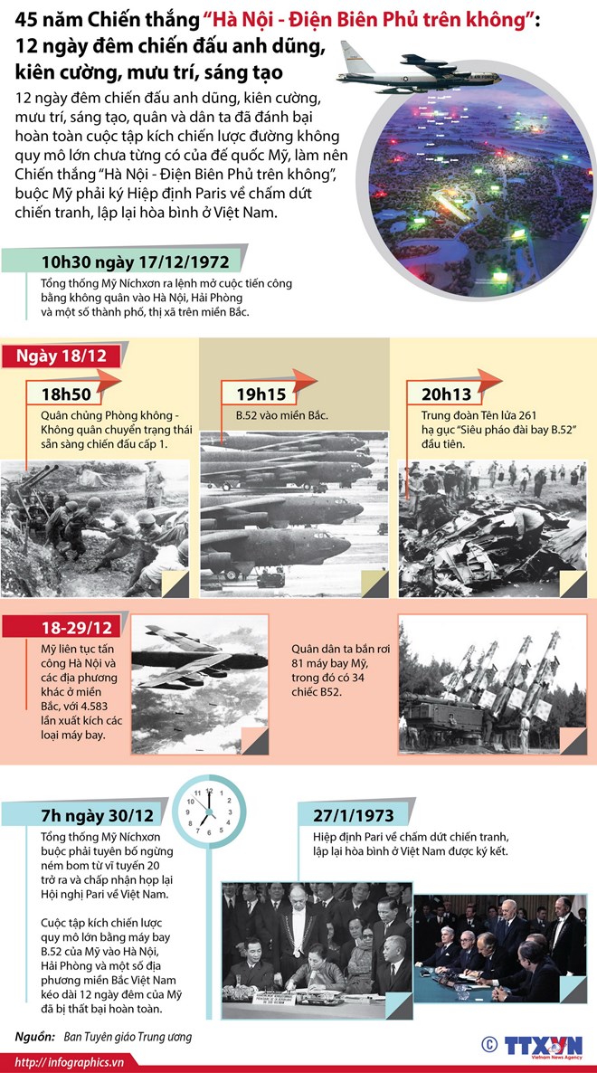 12 ngày đêm chiến đấu anh dũng, kiên cường, mưu trí, sáng tạo, quân và dân ta đã đánh bại hoàn toàn cuộc tập kích chiến lược đường không quy mô lớn chưa từng có của đế quốc Mỹ, làm nên Chiến thắng "Hà Nội - Điện Biên Phủ trên không," buộc Mỹ phải ký Hiệp định Paris về chấm dứt chiến tranh, lập lại hòa bình ở Việt Nam.