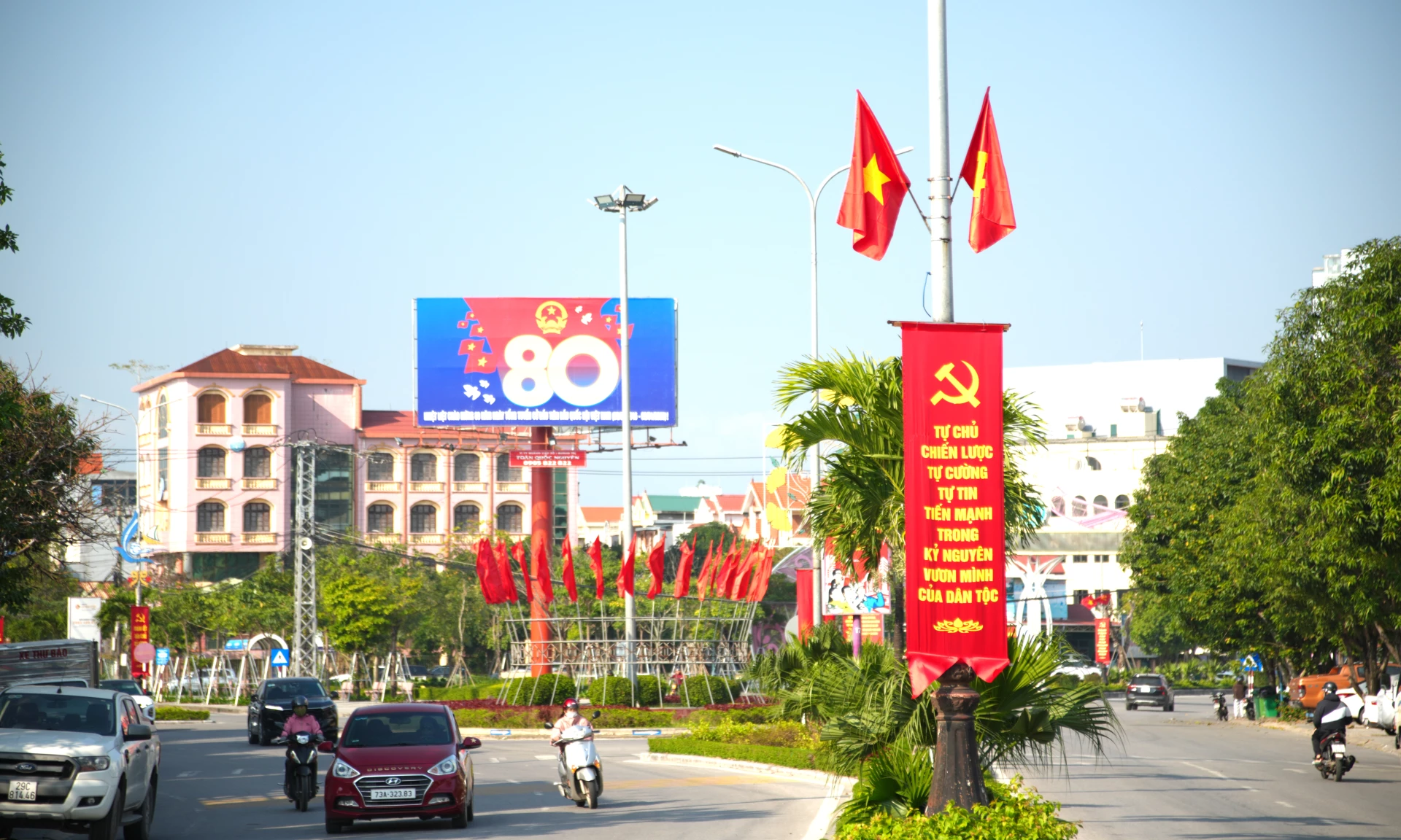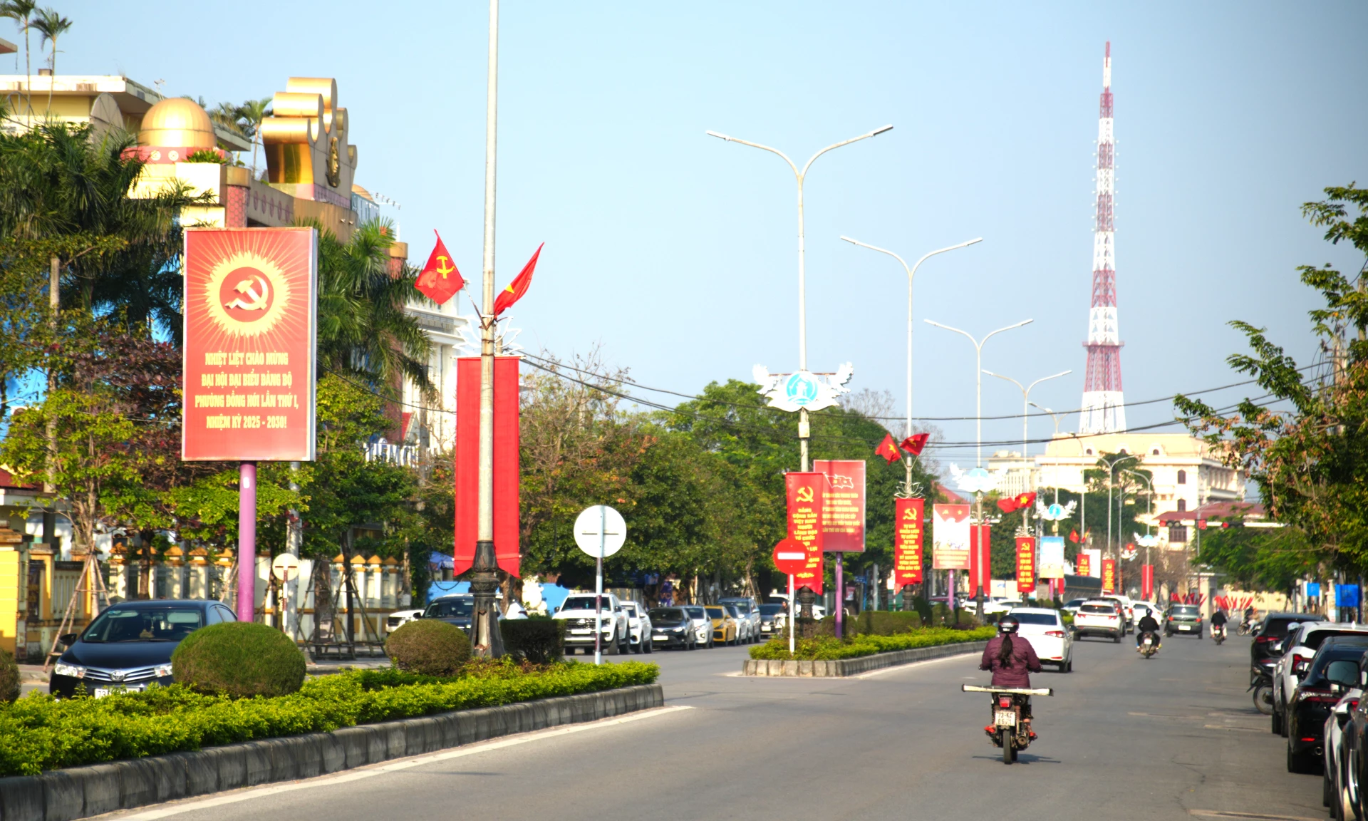 QTO - Những ngày này, trên mọi tuyến đường, góc phố ở các phường Đồng Hới, Đồng Thuận đã được trang hoàng rực rỡ với cờ, hoa, pano, áp phích... chào mừng Đại hội đại biểu toàn quốc lần thứ XIV của Đảng. Cùng với đẩy mạnh công tác tuyên truyền, các địa phương tập trung triển khai các hoạt động chỉnh trang đô thị, tạo diện mạo khang trang, văn minh, hướng về sự kiện chính trị trọng đại của đất nước.