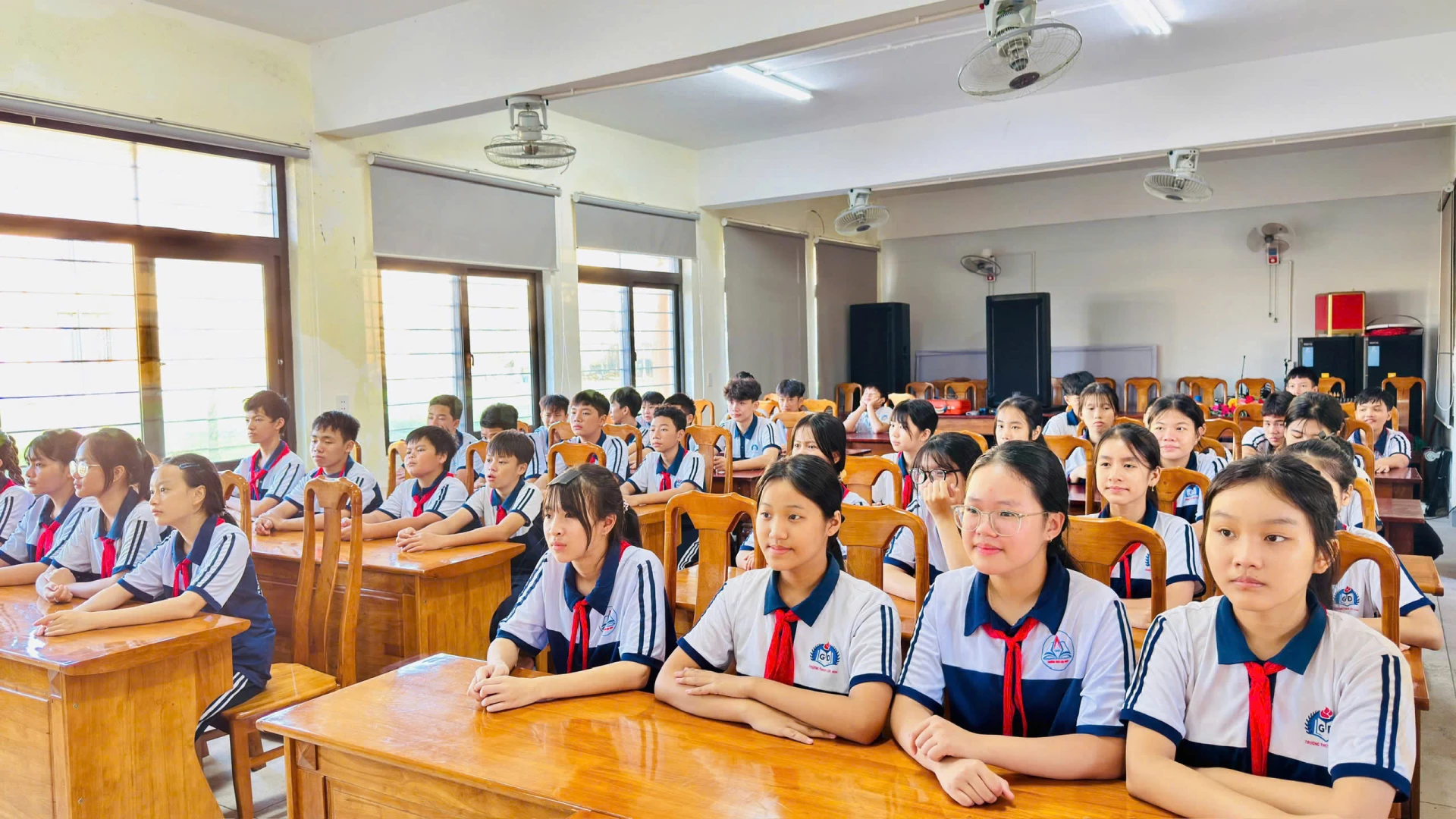 | Học sinh các trường THCS tham gia lễ phát động cuộc thi trực tuyến "Em yêu biển, đảo quê hương" - Ảnh: Mai Linh |