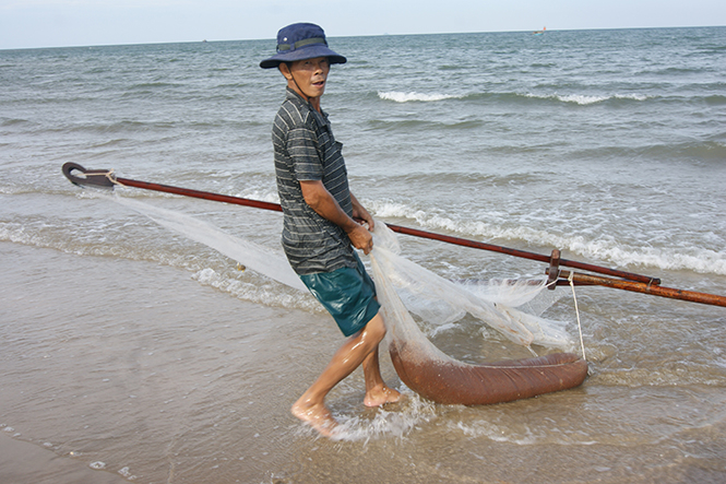 Mùa khuyếc biển chỉ kéo dài trong nửa tháng nên từ sáng sớm đến chiều muộn, hàng trăm ngư dân vùng biển bãi ngang ở huyện Quảng Trạch hối hả đánh bắt sản vật này.
