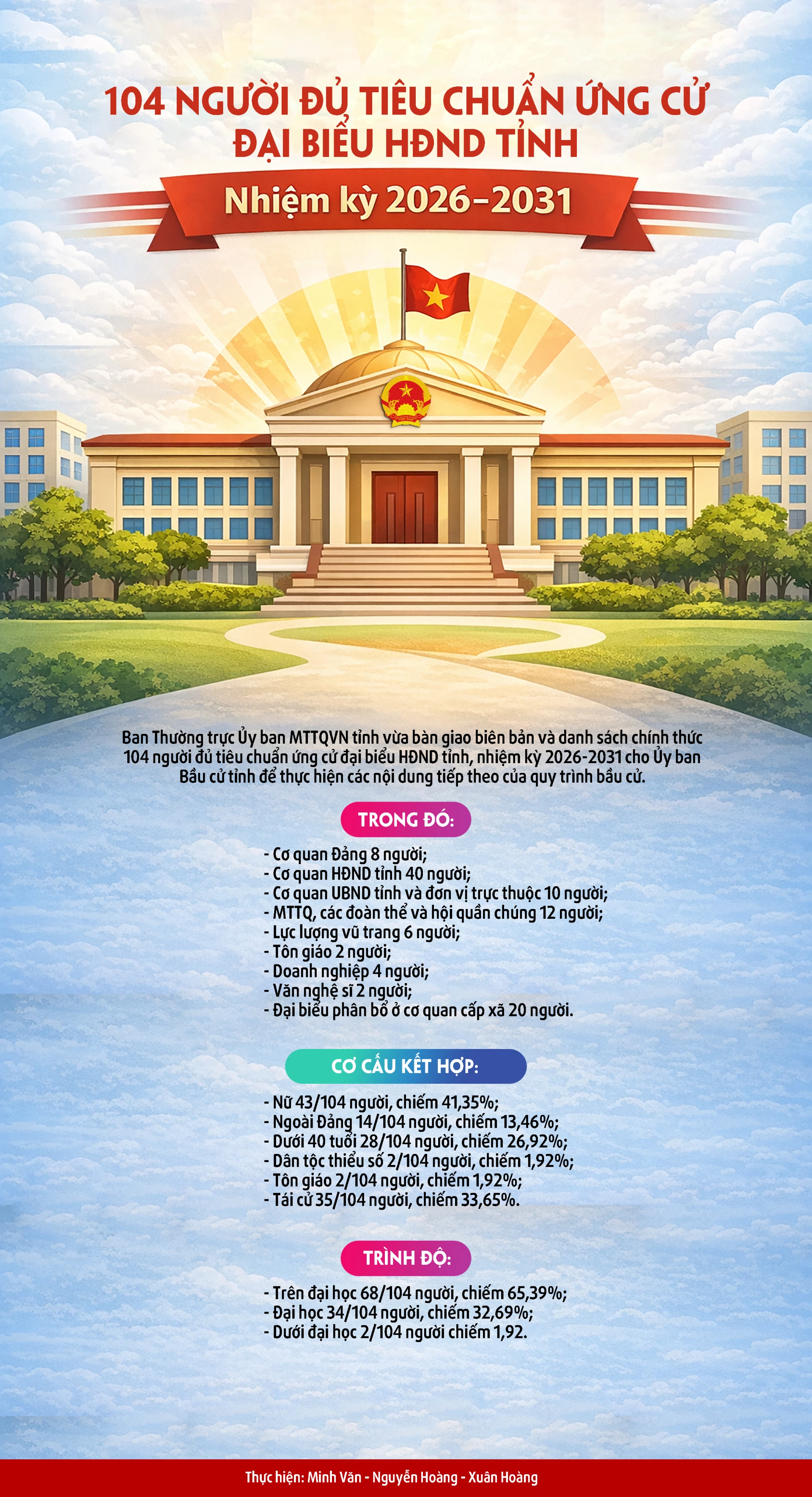 104 người đủ tiêu chuẩn ứng cử đại biểu HĐND tỉnh, nhiệm kỳ 2026-2031