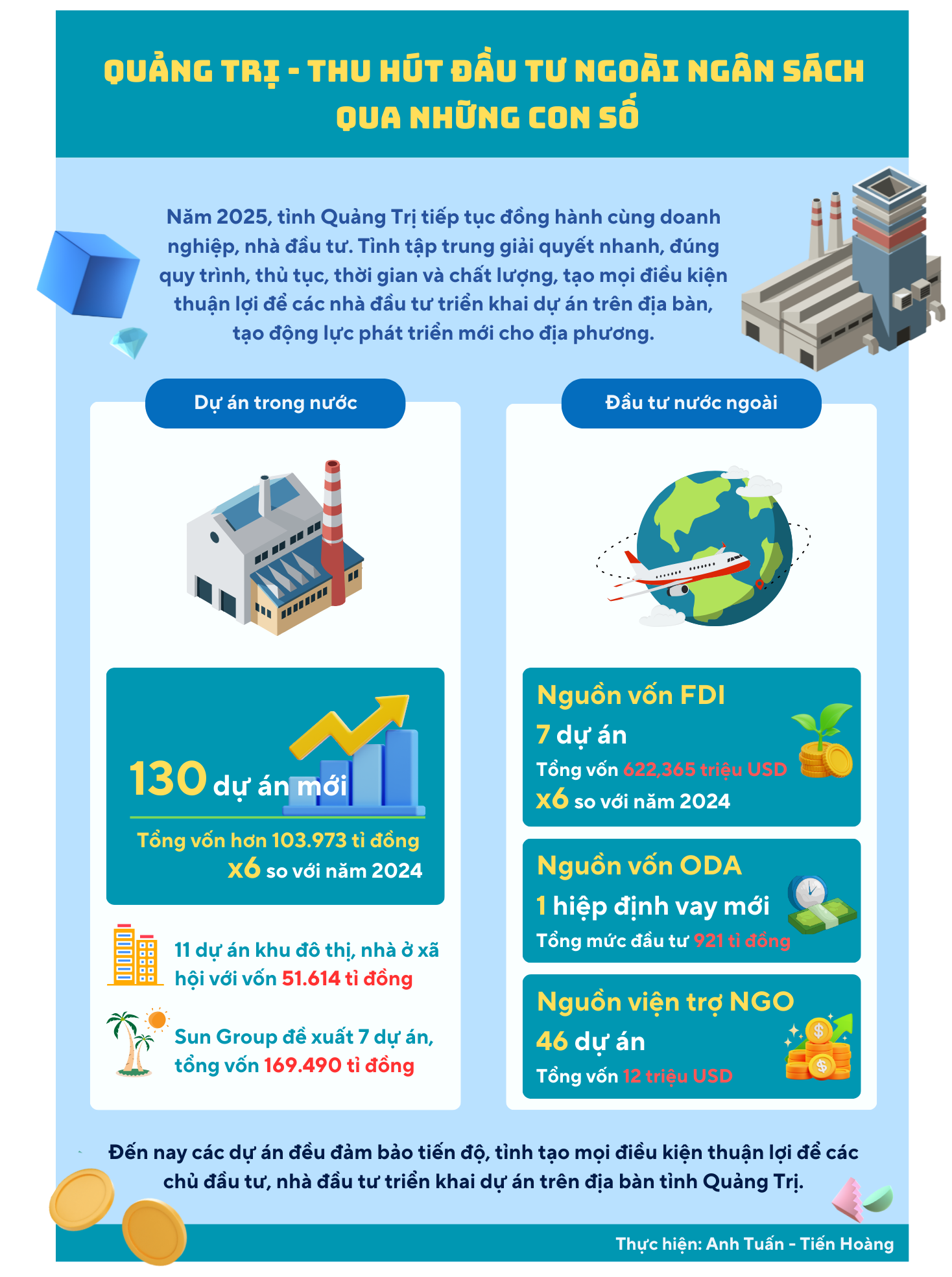 QTO - Năm 2025, tỉnh Quảng Trị tiếp tục đồng hành cùng doanh nghiệp, nhà đầu tư. Tỉnh tập trung giải quyết nhanh, đúng quy trình, thủ tục, thời gian và chất lượng, tạo mọi điều kiện thuận lợi để các nhà đầu tư triển khai dự án trên địa bàn, tạo động lực phát triển mới cho địa phương.