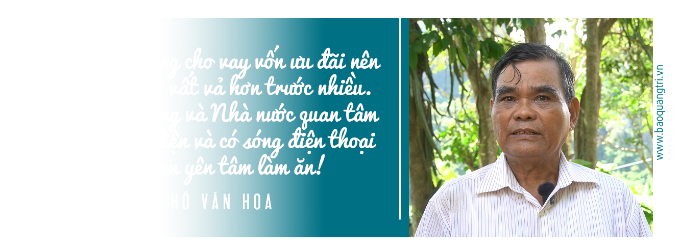 Đến nay bản Nước Đắng đã có 12 hộ, Hôi Rấy có 9 hộ thoát nghèo. Nguồn vốn ưu đãi của Ngân hàng chính sách đến với đồng bào, góp phần mang lại những nếp nhà vững chãi, đàn gia súc, gia cầm và rừng keo, tràm xanh mát, những mùa vụ no đủ có một phần đóng góp quan trọng của những trưởng thôn, trưởng bản đầy tinh thần trách nhiệm và nhiệt huyết với bản làng!