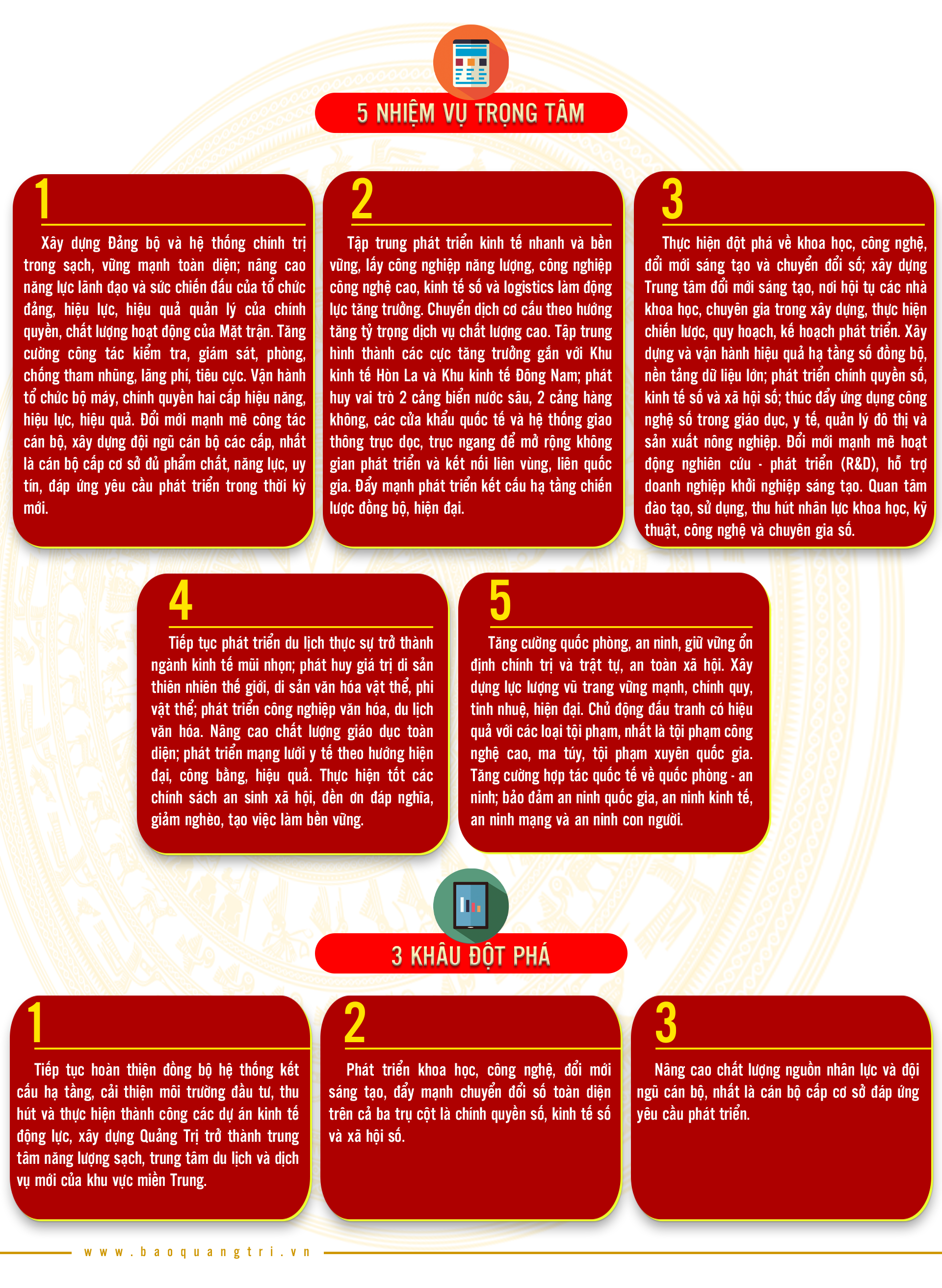 Với chủ đề: “Xây dựng Đảng bộ và hệ thống chính trị trong sạch, vững mạnh; phát huy sức mạnh đại đoàn kết toàn dân và khát vọng phát triển; huy động và sử dụng hiệu quả mọi nguồn lực; đẩy mạnh đổi mới sáng tạo, chuyển đổi số; phấn đấu đưa Quảng Trị trở thành cực tăng trưởng mới trong khu vực miền Trung”, Đại hội thể hiện quyết tâm chính trị cao và khát vọng vươn lên mạnh mẽ của toàn Đảng bộ, chính quyền, lực lượng vũ trang và Nhân dân tỉnh.