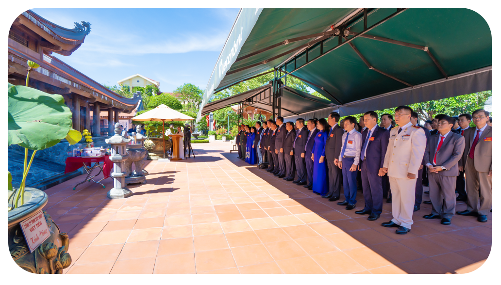 Trước anh linh Chủ tịch Hồ Chí Minh và các anh hùng liệt sĩ, đoàn đại biểu dự Đại hội đại biểu Đảng bộ tỉnh Quảng Trị lần thứ I, nhiệm kỳ 2025-2030 kính cẩn dâng nén hương tâm hương bày tỏ lòng thành kính, biết ơn vô hạn công lao to lớn, sự hy sinh cao cả của Chủ tịch Hồ Chí Minh và các anh hùng liệt sĩ đối với sự nghiệp cách mạng. Các đại biểu nguyện một lòng đi theo con đường mà Đảng, Bác Hồ đã lựa chọn; luôn đoàn kết một lòng, tuyệt đối trung thành với Đảng, Nhà nước và Nhân dân, với chế độ xã hội chủ nghĩa, quyết tâm xây dựng quê hương ổn định về chính trị, phát triển nhanh và bền vững.