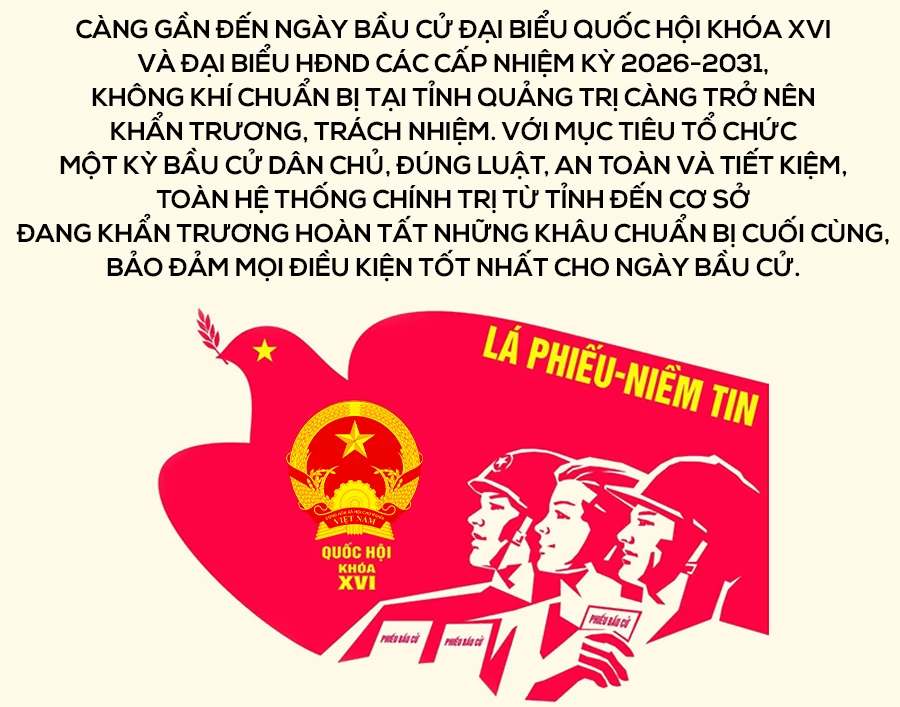Với mục tiêu bảo đảm để mỗi lá phiếu của cử tri đều được thực hiện đầy đủ, đúng luật và an toàn, công tác tuyên truyền về bầu cử được tỉnh Quảng Trị triển khai sớm, đồng bộ, đa dạng hình thức, gắn với tuyên truyền Nghị quyết Đại hội XIV của Đảng và Nghị quyết Đại hội Đảng bộ tỉnh Quảng Trị lần thứ I, nhiệm kỳ 2025-2030. Nội dung tuyên truyền không chỉ nhấn mạnh quyền và nghĩa vụ của cử tri, mà còn làm rõ ý nghĩa chính trị, pháp lý của cuộc bầu cử, trách nhiệm của mỗi công dân trong việc lựa chọn những đại biểu thật sự tiêu biểu, có đủ phẩm chất, năng lực và uy tín.
