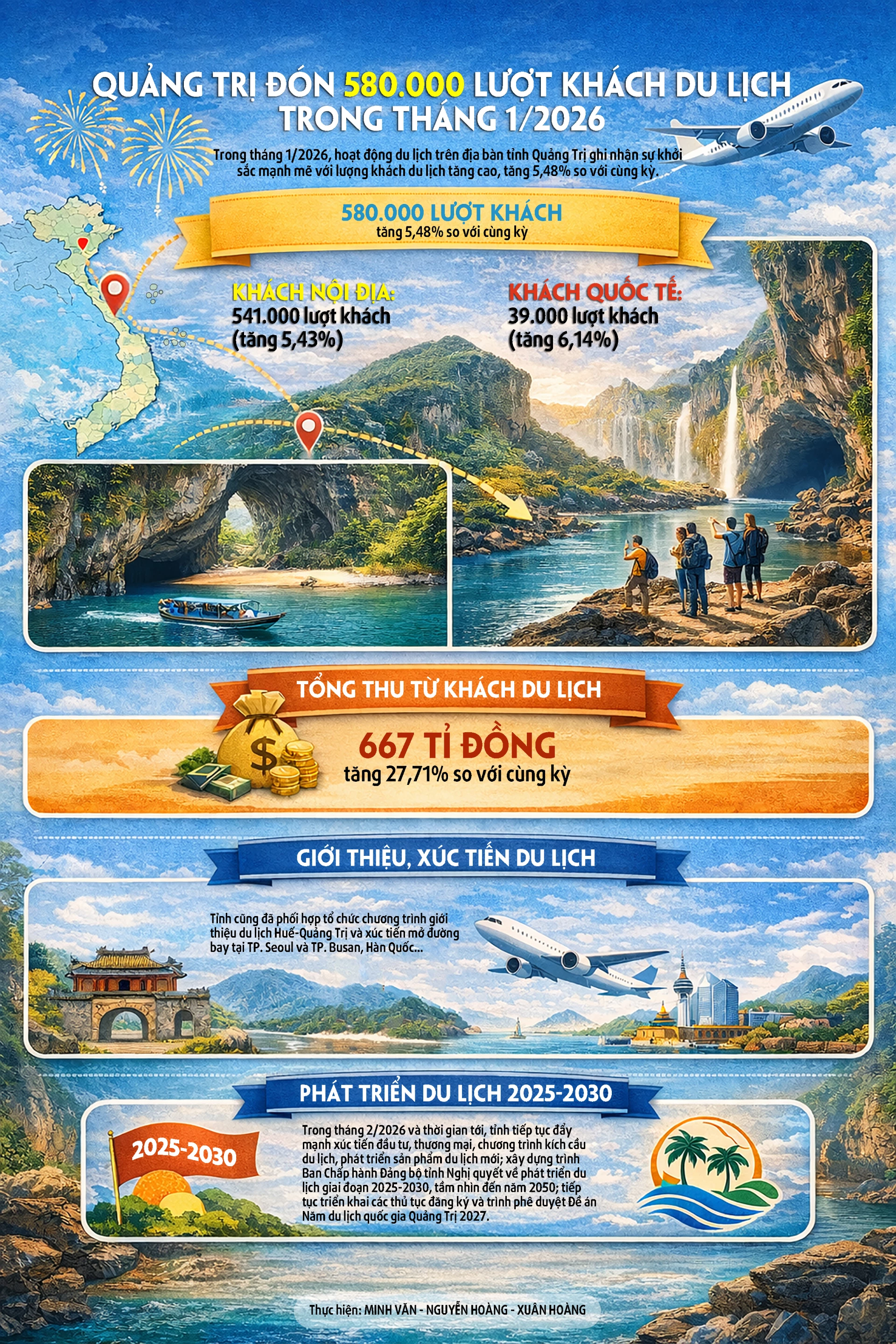 QTO - Trong tháng 1/2026, hoạt động du lịch trên địa bàn tỉnh Quảng Trị ghi nhận sự khởi sắc mạnh mẽ với lượng khách du lịch tăng cao, tăng 5,48% so với cùng kỳ.