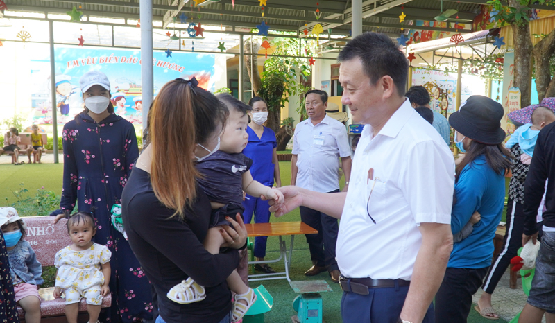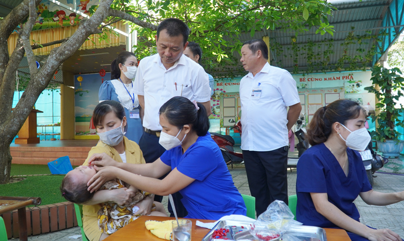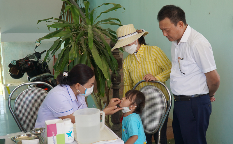 Giám đốc CDC Quảng Bình bác sỹ Đỗ Quốc Tiệp kiểm tra, giám sát công tác triển khai uống vitamin A tại huyện Bố Trạch.