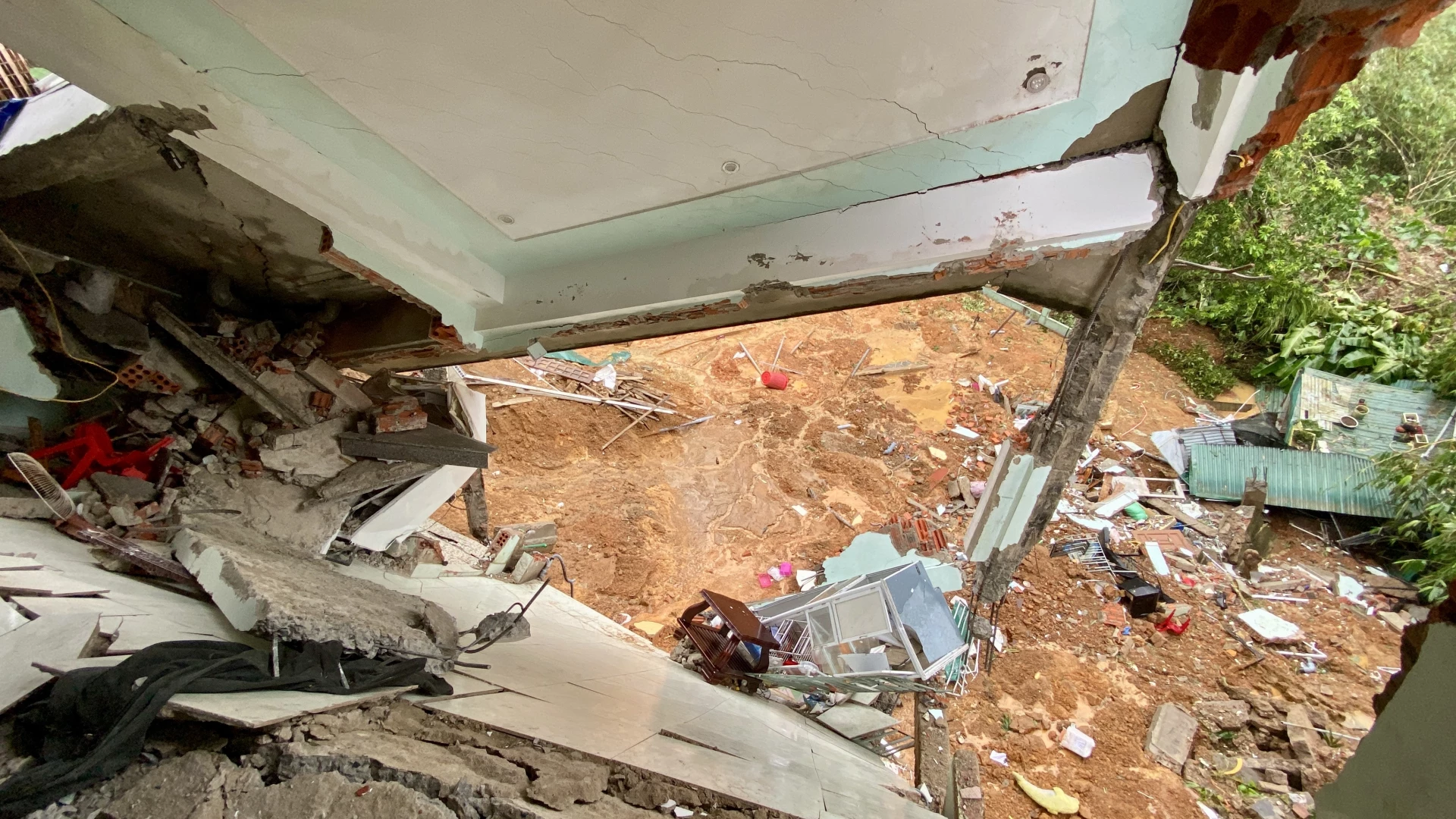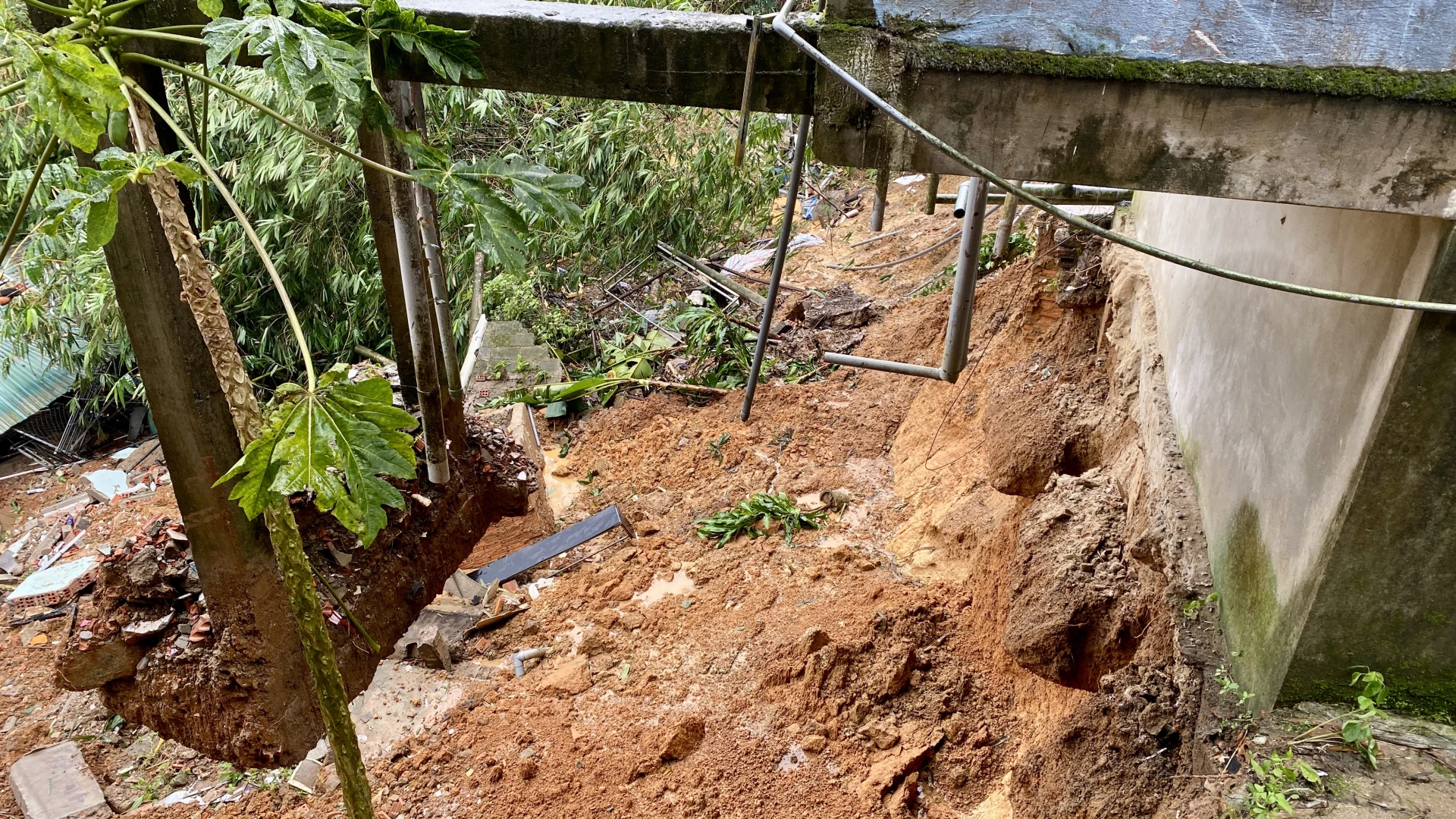 Sạt lở tại khu dân cư đường Hùng Vương, khối 3A, xã Khe Sanh - Ảnh: H.N