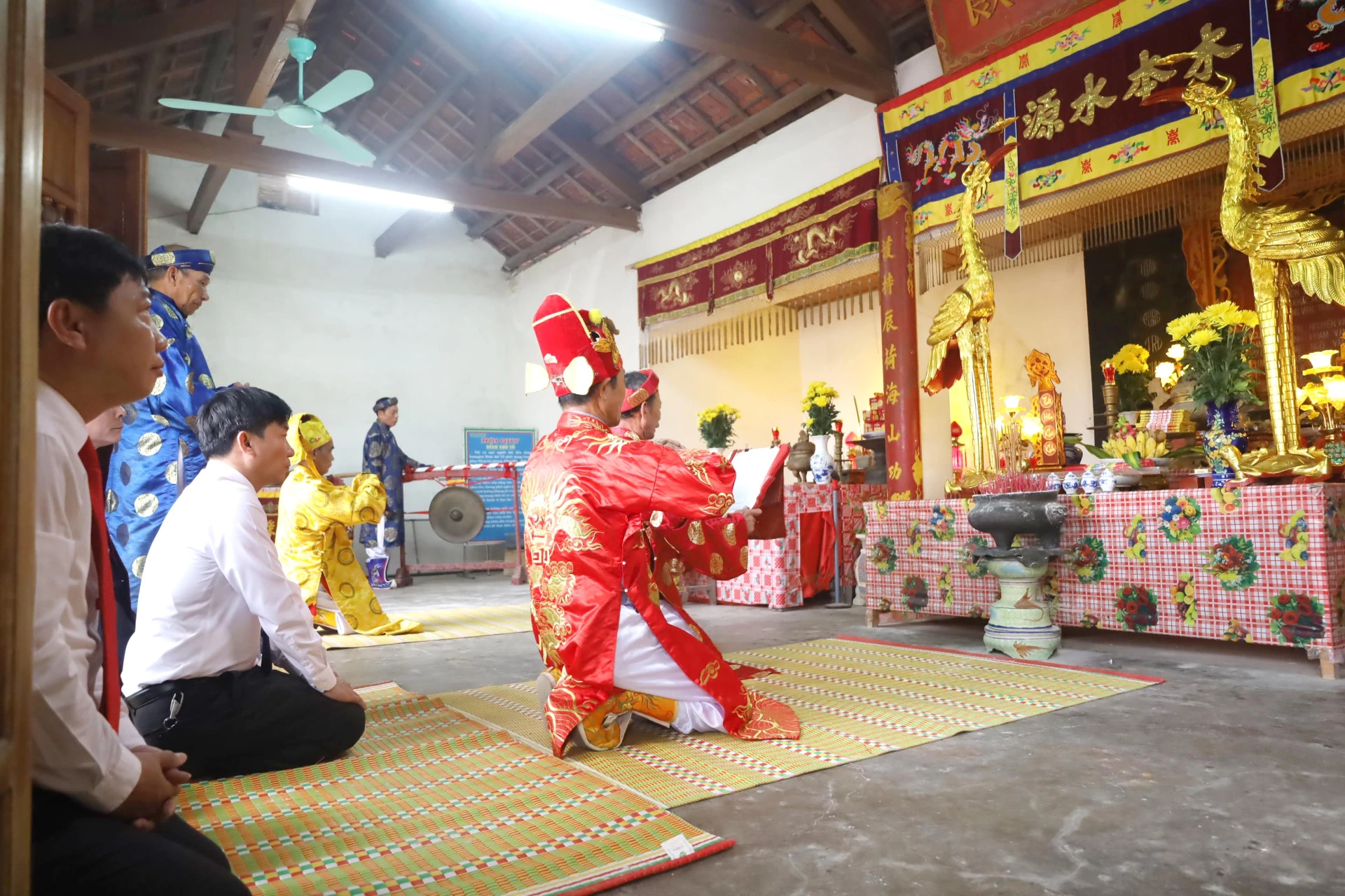 | Nghi thức xin rước Thần hoàng về dự lễ cầu ngư tại đình thờ Tổ - Ảnh: V.Minh |