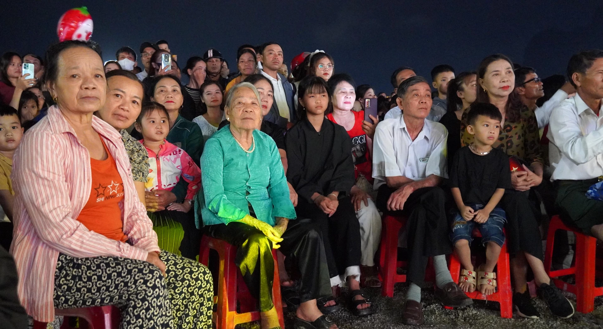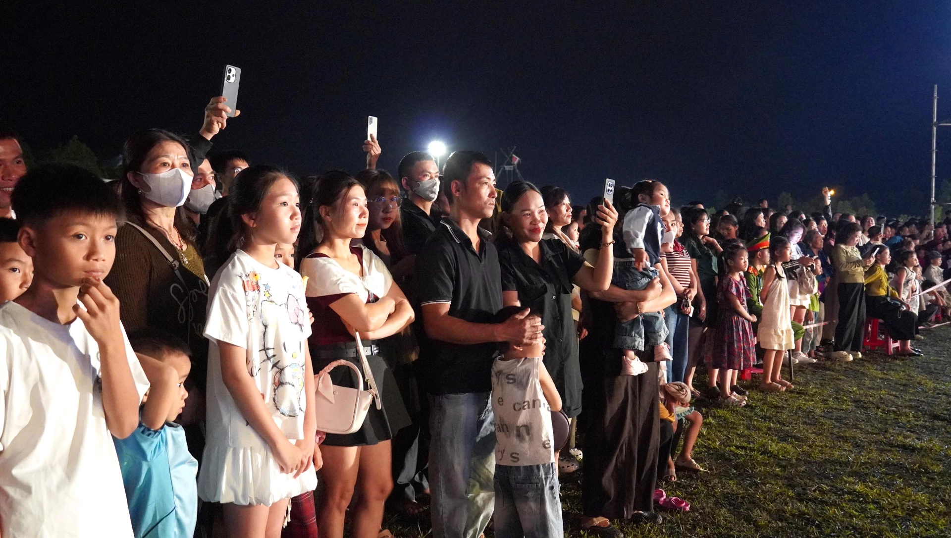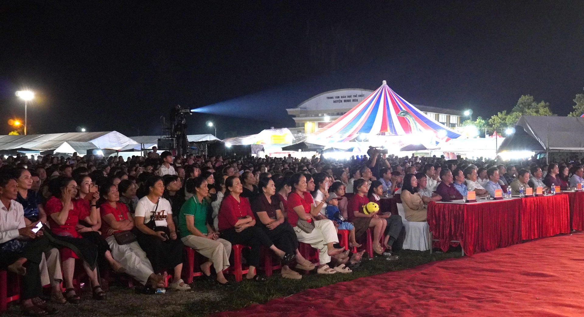 | Đông đảo người dân đến xem chương trình nghệ thuật với chủ đề: “Minh Hóa-Âm vang Hội Rằm tháng Ba”. |